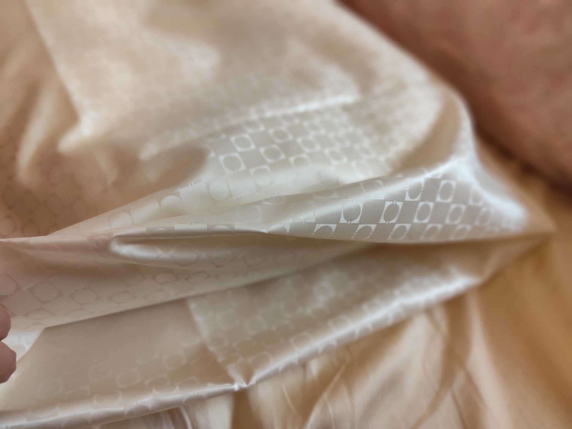 珍しい柄入りのプレミアムシルクを贅沢に両面使用したまくらカバーです。