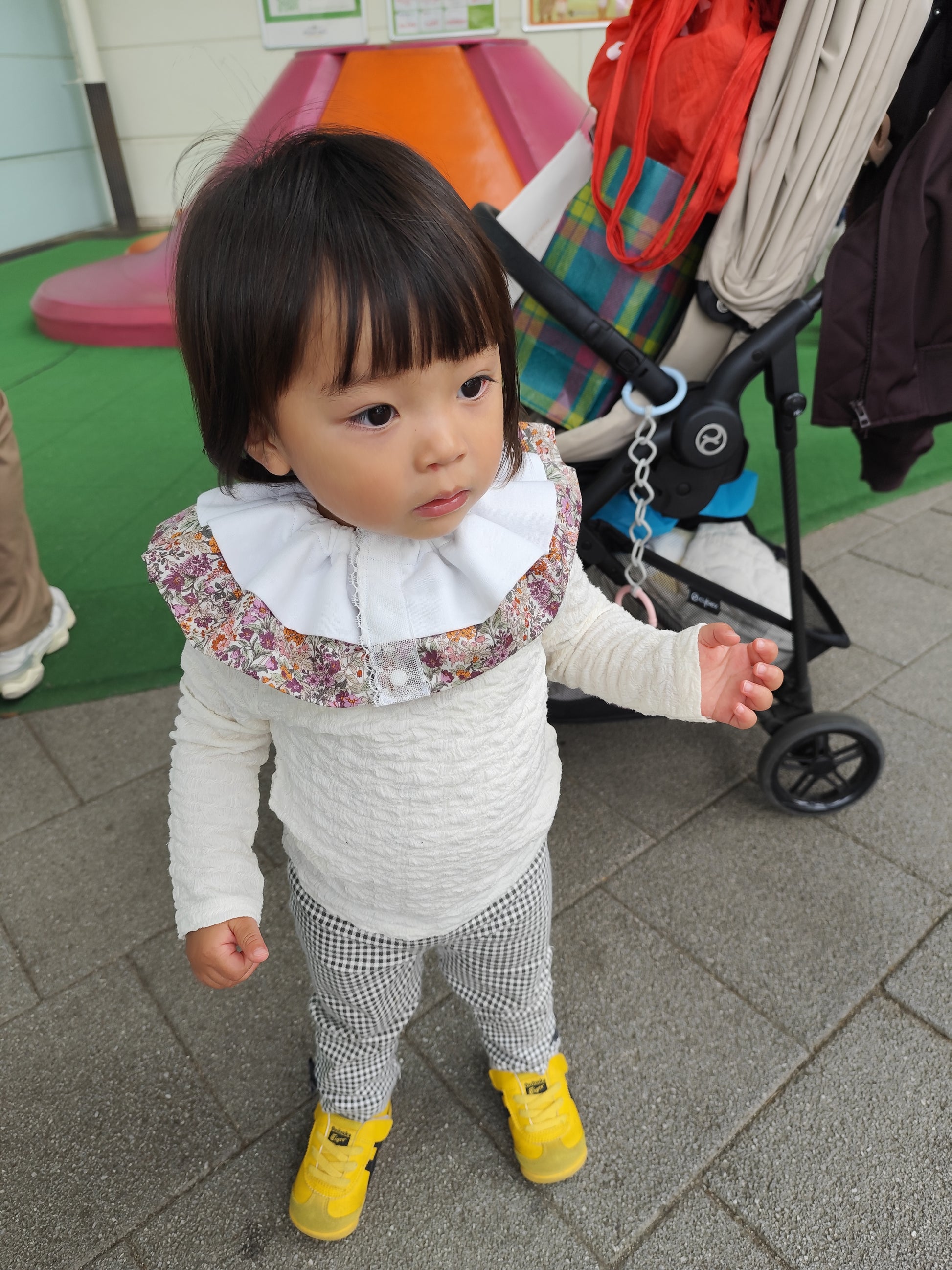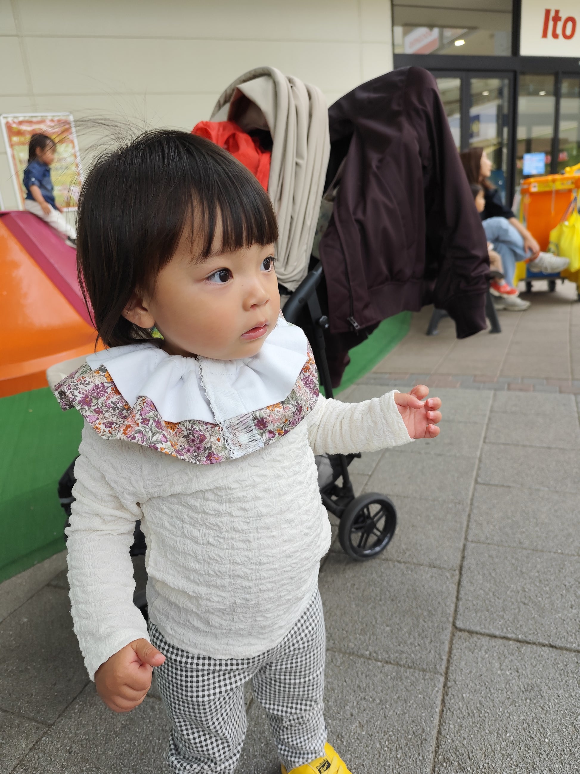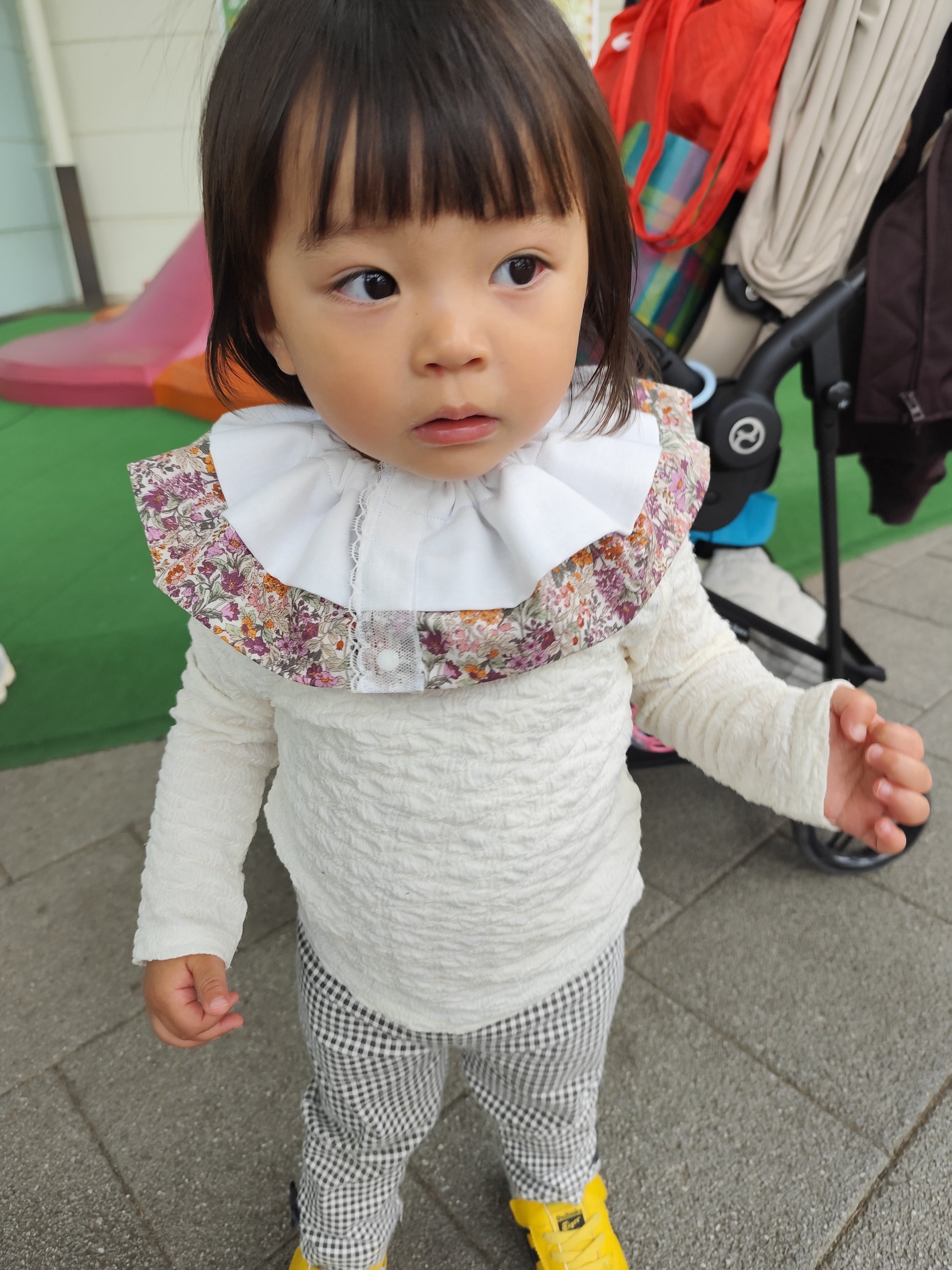 スナップボタンも2つついているので、下のボタンを外せばスタイ卒業後のオシャレ襟にも!