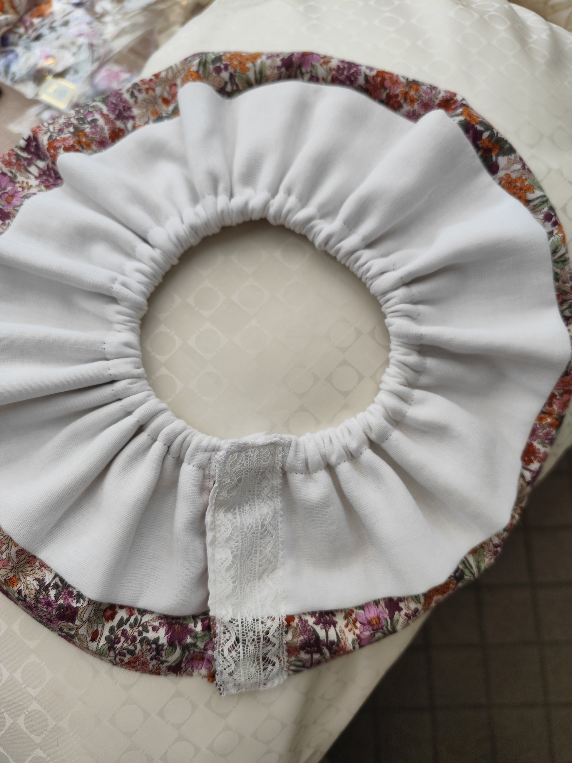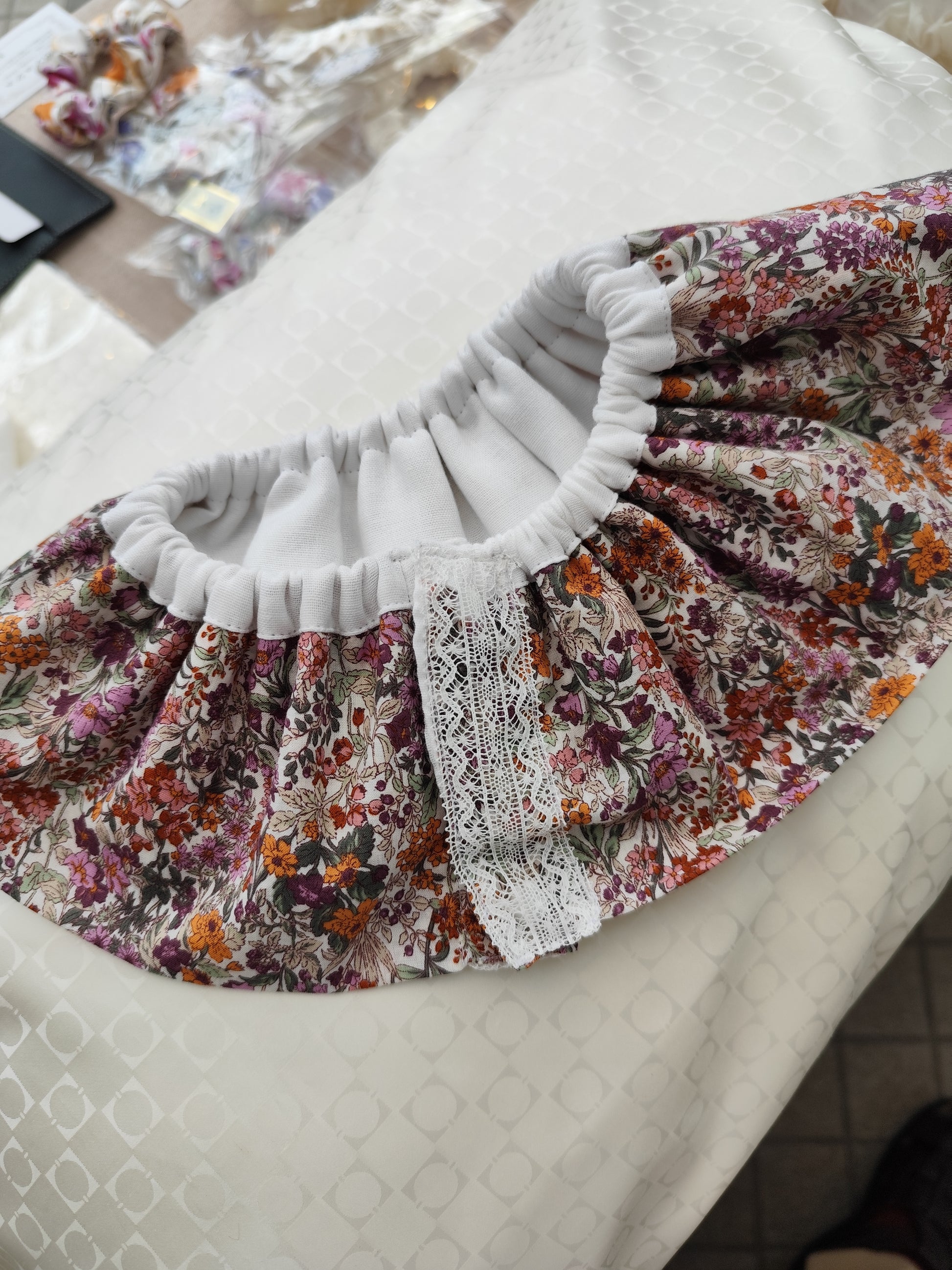 また、スナップボタンとゴムが両方付いているので起きているときには頭から被せて、寝ている時にそっとスナップボタンを外したり、忙しいママのことを考えて作りました🥰✨