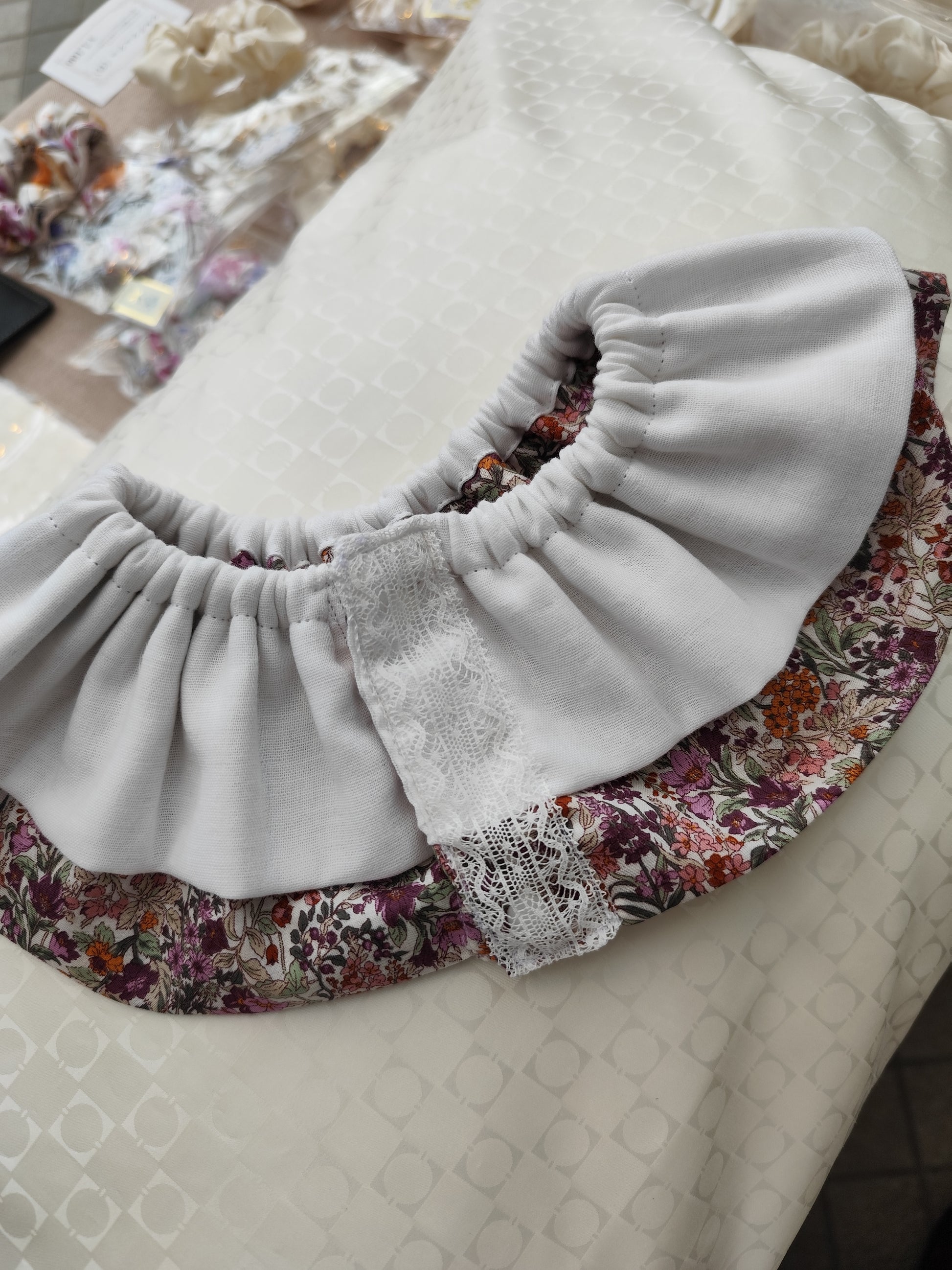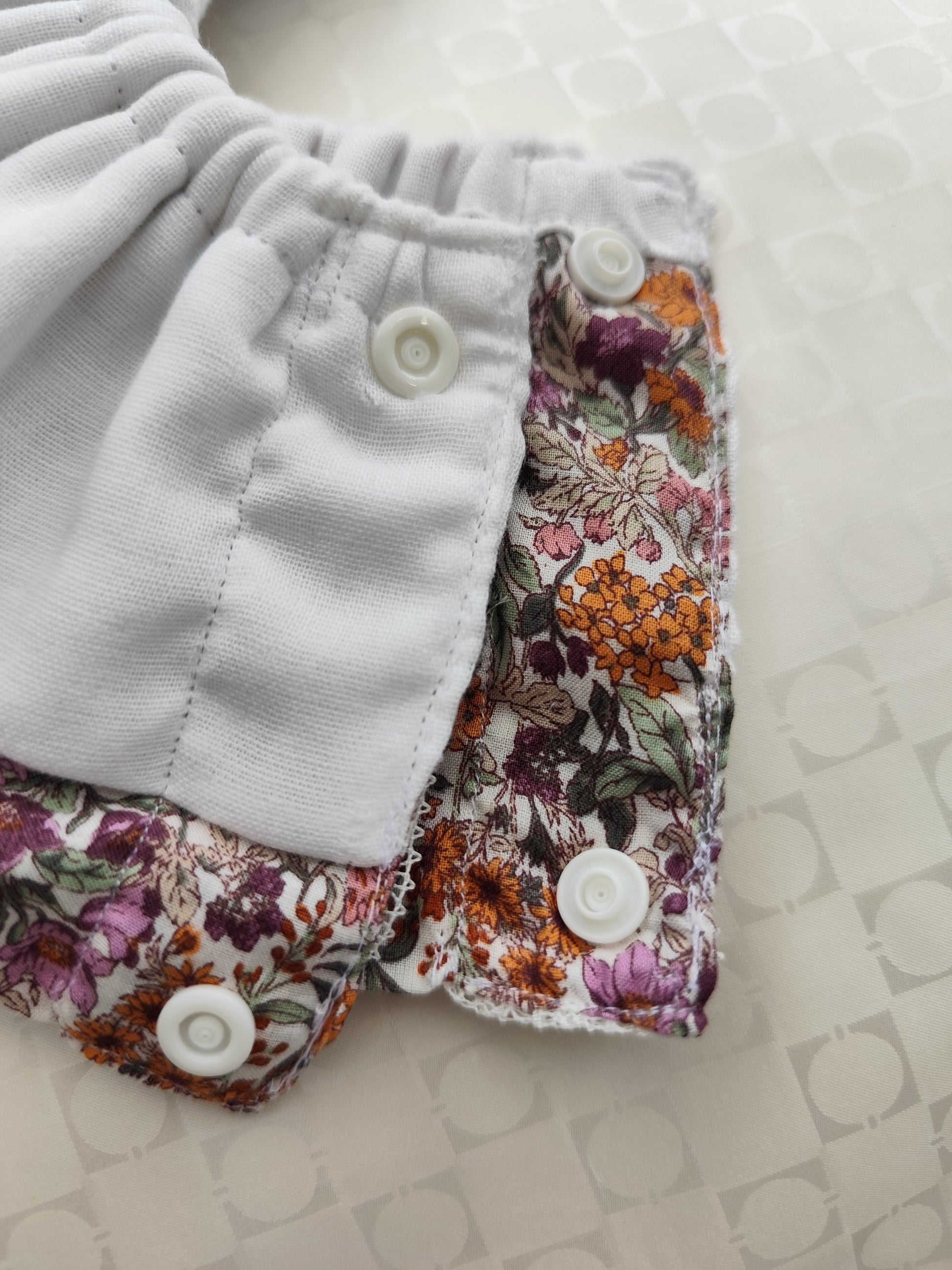 コットン100%の花柄生地とコットン100%の国産ダブルガーゼで作った肌触りのいいベビースタイです👶